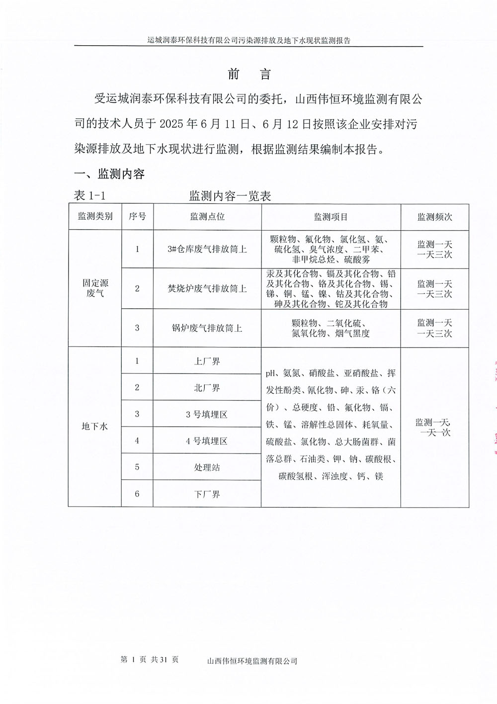 2025年潤泰環(huán)保六月份自行監(jiān)測報(bào)告