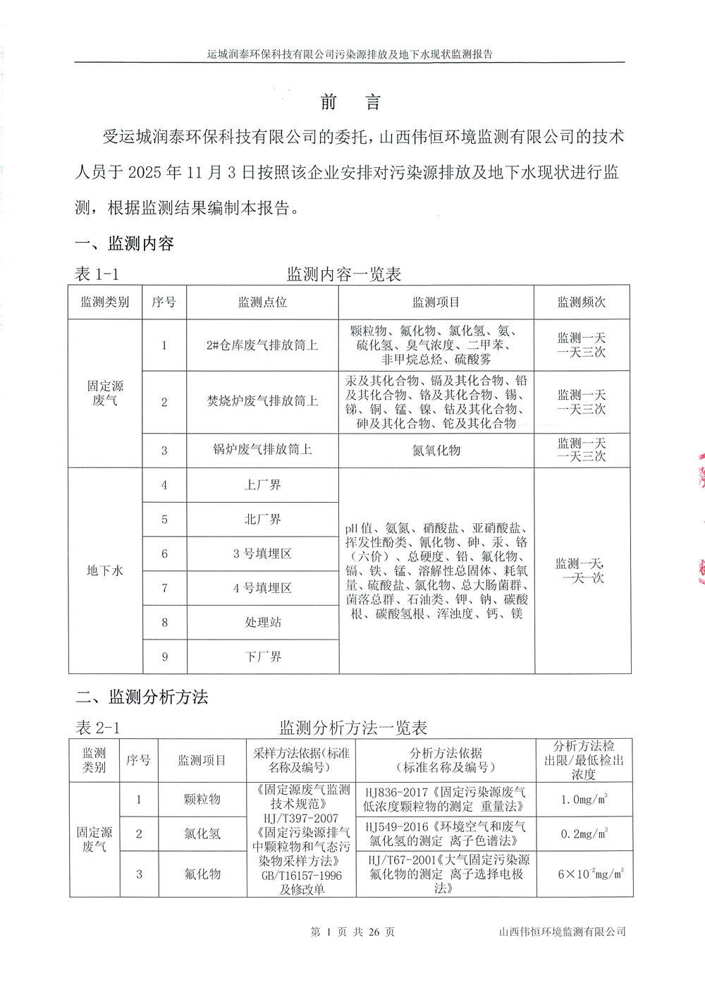 2025年潤泰環(huán)保十一月份自行監(jiān)測報告