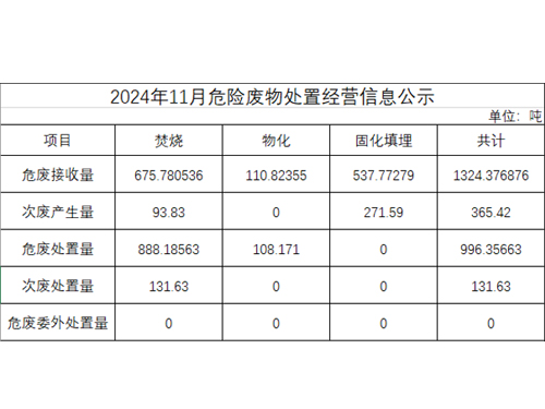 2024年9月份危險廢物處置經(jīng)營信息公示