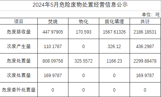 5月危險(xiǎn)廢物處置經(jīng)營信息公示